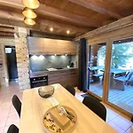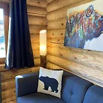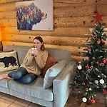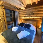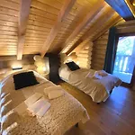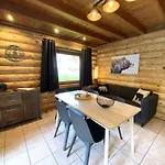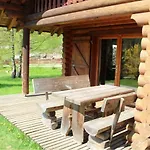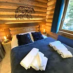 Die L'Ours Noir Chalet En Rondins verfügt über Parkplätze und eine Terrasse mit Aussicht auf die Berge.